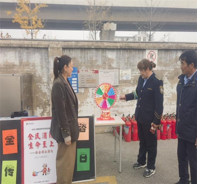活动现场,工会特别设置了“消防知识幸运转盘”互动游戏区。转盘上涵盖火灾报警、应急电话、灭火器使用等多项基础消防常识,参与者转动转盘后,需现场回答对应问题。答对者可获得定制消防主题纪念品,答错则由安全员现场讲解正确答案。该形式寓教于乐,吸引了众多职工踊跃参与,现场气氛热烈。