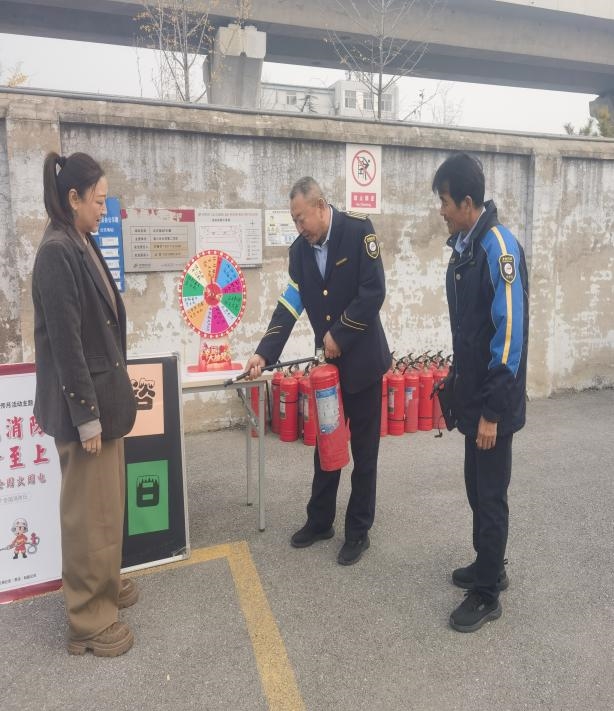 在实操环节,安全员详细演示了干粉灭火器“提、拔、握、压”的使用步骤,并组织职工轮流上阵,亲手操作灭火器扑灭模拟火盆。